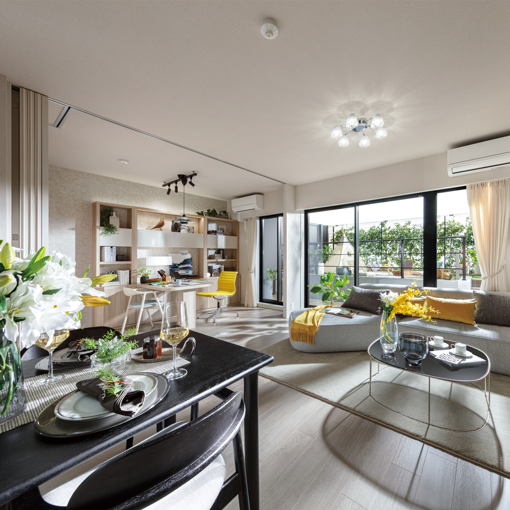 2LDK~4LDKの多彩な間取りプランに加え、専用庭付き住戸や収納力に優れたフィットインクローゼット、ウォークインクローゼットを採用。快適性を追求した設備と間取りが充実しています。エリア特徴